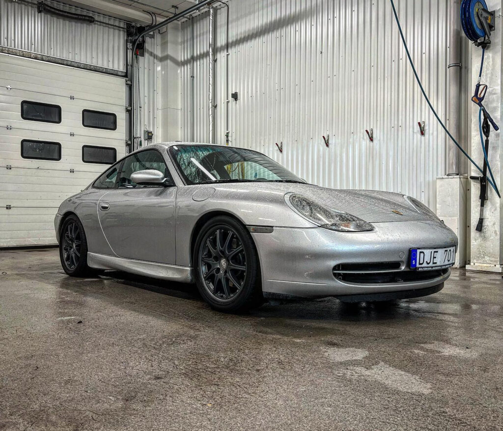 The first one was a black Carrera 2, and the paint job had seen better days, so the car went through a full wrap transformed into pearl white. The exterior of this Porsche was a combination of a turbo front, GT3 MK2 side skirts and a GT3 MK1 ”taco style” rear wing. Odd indeed, but still looked amazing.